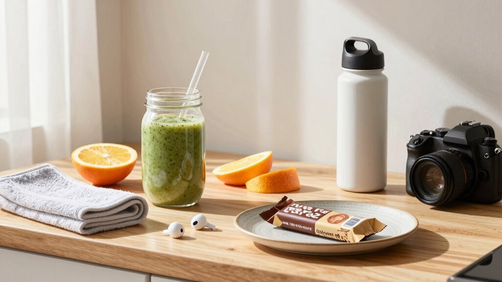 A Sunday setup routine can make Monday workouts much easier by preparing your gear, meal options, and outfit the night before. This reduces decision fatigue and morning stress, helping you start the week with confidence. By organizing your workout clothes, prepping meals, and planning your schedule on Sunday, you’ll create a smooth shift into a productive week. Keep going to discover how small preparations can make a big difference for your fitness routine.