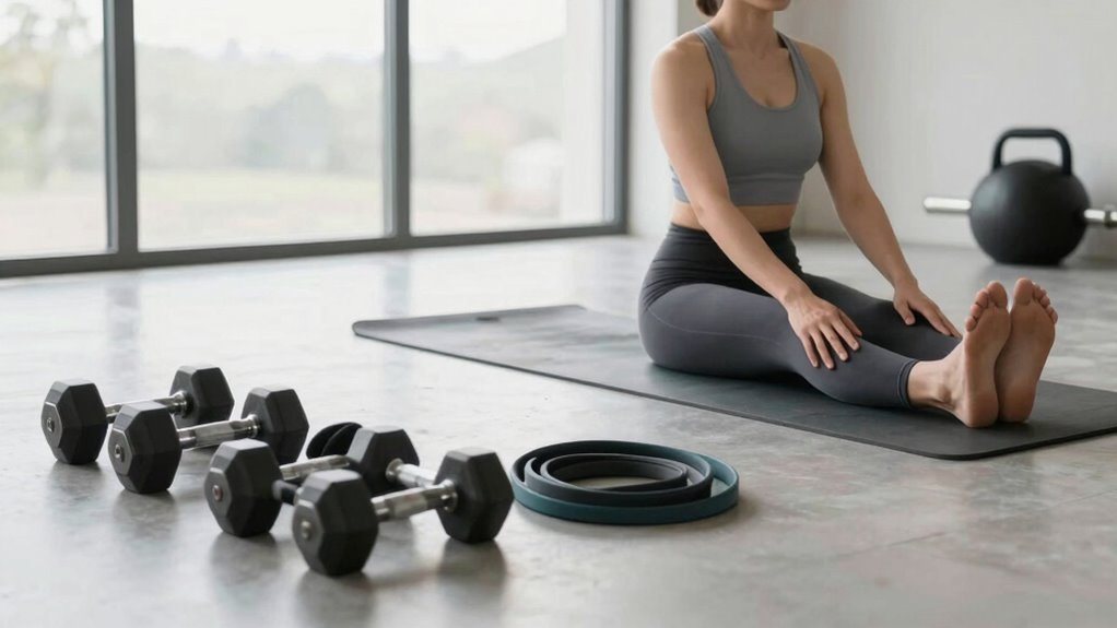 Recovery strategies during a deload week go beyond just taking time off. Incorporate light stretching, foam rolling, and mobility exercises to improve blood flow and reduce muscle tightness. Gentle activities like walking, swimming, or yoga also support recovery without overtaxing your system. Nutrition plays an essential role as well. Prioritize protein intake to aid muscle repair, stay hydrated, and include nutrient-dense foods that support overall recovery. Sleep is indispensable, too—aim for quality rest, as it’s when your body does most of its repair work. Avoid stressful activities that could elevate cortisol levels, which hinder recovery and exacerbate fatigue. Managing training workload effectively helps ensure your body can recover fully and sustainably.