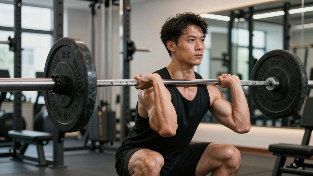 Slowing down your reps offers several key benefits that can considerably enhance your workout results. First, it increases muscle tension, promoting better strength gains. Second, it improves form by forcing you to focus on proper movement patterns. Third, it enhances mind-muscle connection, leading to more effective muscle engagement. Additionally, controlled reps reduce momentum, minimizing injury risk. Incorporating tempo training techniques can further optimize your training environment for safer and more effective workouts. This deliberate pacing also encourages greater muscle activation, leading to more efficient training sessions. By emphasizing controlled movement, athletes can achieve more consistent progress and reduce the likelihood of overtraining. Using slower reps also allows you to better understand your muscle engagement during each exercise, improving overall workout quality.