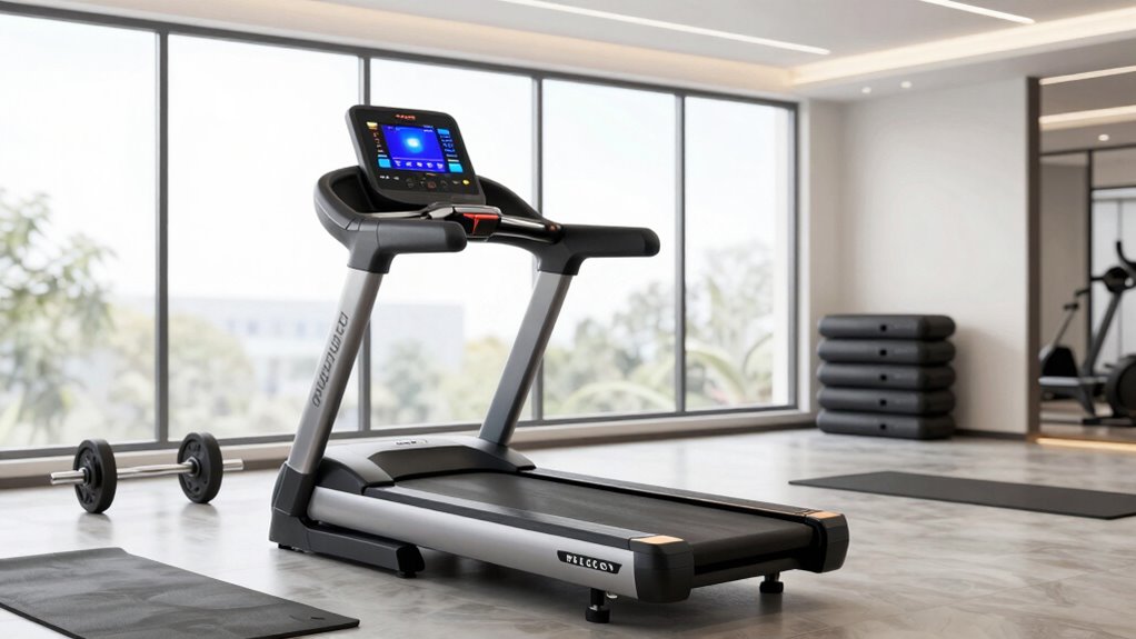 You should keep your eyes peeled for safety features like safety sensors and an emergency stop button. These are your first line of defense if something goes wrong. Safety sensors detect unusual activity or imbalance, while the emergency stop allows you to quickly halt the machine. Don’t take shortcuts here—these features are essential to keep you safe during your workout and prevent potential injuries. Safety always comes first.