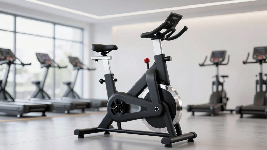 When selecting a belt drive spin bike under $800, I focus on key factors like resistance system quality, durability, and adjustability to guarantee a smooth workout. I also consider noise levels and digital features, since these impact comfort and convenience during use. Keeping these points in mind helps me find a bike that balances performance, longevity, and tech.