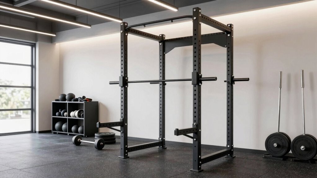 You’ll find that most half racks are quite customizable and upgradeable, which is a huge plus. I like how I can easily swap out J-hooks, add pull-up bars, or attach accessories to tailor my setup. While some upgrades might require tools or slight modifications, overall, these racks are designed with flexibility in mind. This means you can grow your gym as your training needs evolve, making it a smart investment.