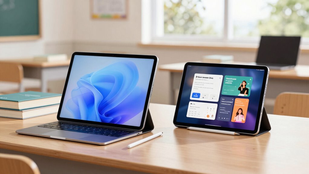 When choosing between the iPad Pro 2025 and the iPad Air for students, I focus on performance, portability, and budget. The iPad Pro offers a larger, high-resolution display, powerful M2 chip, and better durability, perfect for creative projects. The iPad Air is lighter, more affordable, and great for everyday tasks. If you want to learn about which model suits your needs best and why, stay with me as I explain more details.