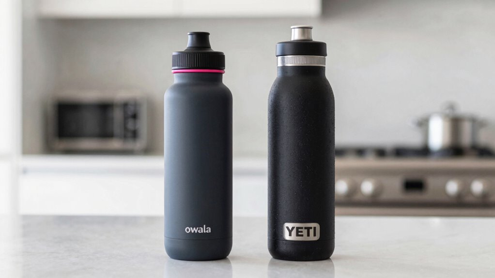 Honestly, Yeti wins when it comes to leak-proof features for travel. I’ve had my Owala leak on me once or twice, but Yeti’s double-wall insulation and secure lid design keep everything inside. It’s ironic because Yeti’s reputation for toughness extends to its seals. So, if you’re looking for a bottle that won’t turn your bag into a mini pool, go with Yeti—trust me, it’s worth it.
