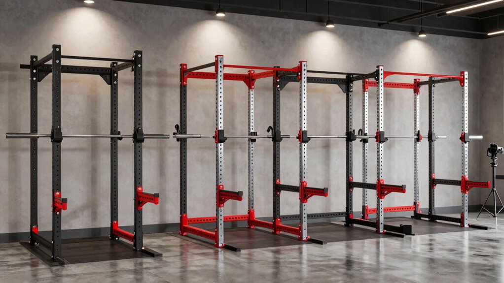 Budget considerations play a crucial role in selecting the right power rack for your garage gym. First, determine your price range, which can vary from $200 to over $1000 based on features and build quality. Keep in mind that investing in accessories or attachments, like safety bars or pull-up bars, can add to the overall cost, so plan accordingly. It’s essential to balance your budget with durability and safety—cheaper racks may lack sturdy construction or advanced features, potentially risking safety during heavy lifts. Look for models offering warranty coverage and reliable customer support to ensure long-term value. Ultimately, prioritize quality and safety over initial low cost, as a well-made power rack is a worthwhile investment for your training.