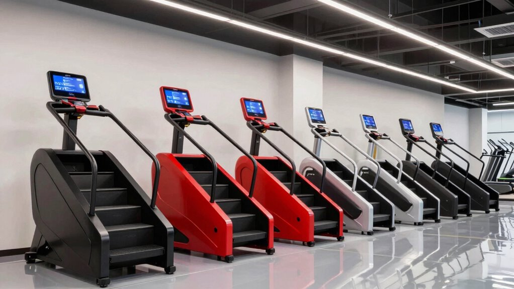 Setting a budget under $2000 opens up a wide selection of high-quality stair stepper machines packed with advanced features. With this price range, you can find models that offer excellent durability, multiple resistance levels, and diverse workout programs, all designed to maximize your exercise experience. Prioritizing value means comparing each machine’s build quality, resistance options, and included features against its price to guarantee you get the most bang for your buck. Investing in a stair stepper within this budget can provide long-term savings, thanks to sturdy construction and extensive functionality. Additionally, examining warranty coverage and after-sales support helps ensure you’re making a smart purchase that offers reliable performance and peace of mind over time.